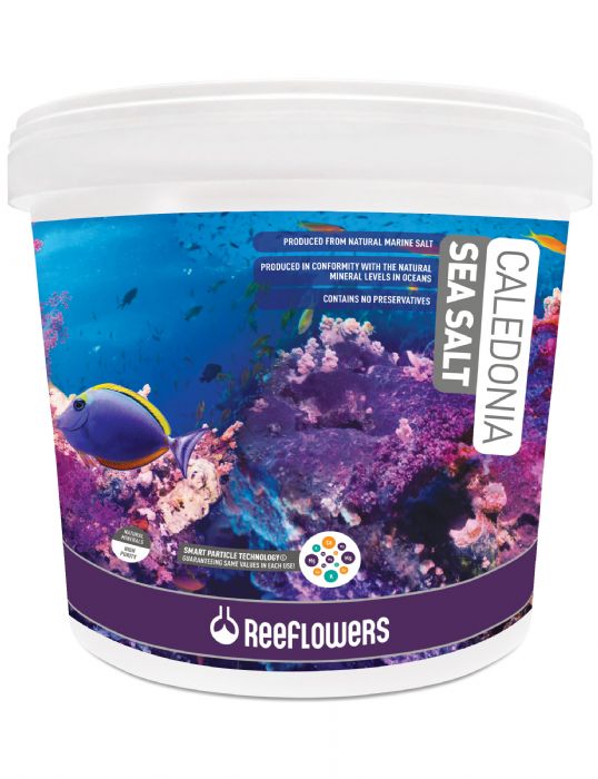 ReeFlowers Caledonia Sea Salt, doğal deniz tuzundan üretilmiştir. Katkı maddesi içermez. Yüksek saflık düzeyinde mineraller kullanılmıştır.kH, kalsiyum, magnezyum, potasyum, stronsiyum değerleri ve iz elementler, canlıların uzun süre sağlıklı kalmasını sağlamak amacı ile doğal okyanus suyuna en yakın değerleri sağlayacak şekilde zenginleştirilmiştir.