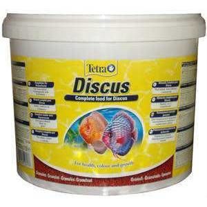 Granüler formda diskus baliklari için ana yem. Renk, sekil ve besinlerin içerige göre Diskus baliklarinin