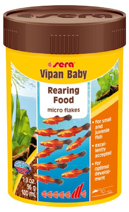 4 cm nin altındaki vücut uzunluğundaki küçük ve yavru balıklar için özel içerik sera vipan baby. Hızla büyüyen ve nazlı bebek balıklar bile sera vipan baby ile başarılı bir şekilde büyütülebilir. Yumuşak pul yemler çok ağır battığı ve yüzeyde uzun süre kaldığından kolaylıkla alınabilir.