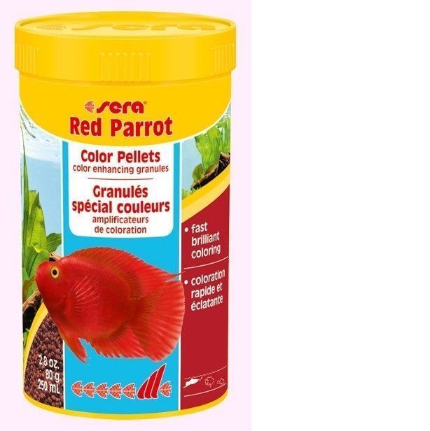 Sera Red Parrot özellikle papağan çiklid balıkları için geliştirilmiş yüzen bir granül yemdir. Özenle seçilmiş hammaddelerin dikkatlice işlenmesiyle yapılmıştır. bu etkileyici balıkların özel gereksinimlerini karşılamak amacıyla çok iyi dengelenmiştir. doğal renklendiriciler sayesinde çok kısa bir sürede bu balıkların görkemli renklere kavuşmasını sağlar.