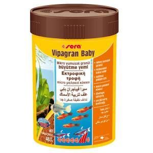 Sera Vipagran Baby, büyüme yemi olarak, 4 cm'den kısa olan, orta su seviyesinde yem arayan ve küçük ağzı olan balıklar için dengeli temel besindir.