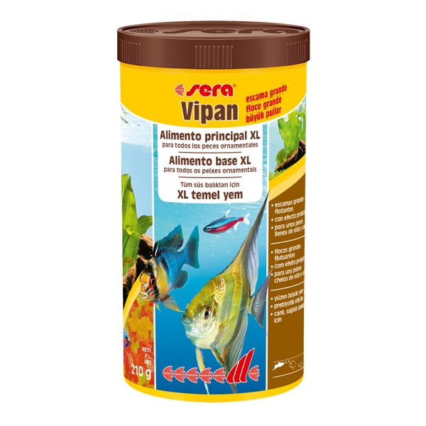 sera Vipan, özellikle su yüzeyinde yiyenler için özenle hazırlanmış gevreklerden oluşan evrensel temel gıda maddesidir.