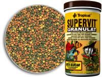 SUPERVIT GRANULAT her tür akvaryum balığı için geliştirilmiş üstün kaliteli bir pul yemdir. Yem içerikleri farklı akvaryumlarda beslenen balıkların ihtiyaçlarını karşılayacak şekilde tasarlanmıştır . SUPERVIT GRANULAT seçilmiş vitamin ,mineral tuzları ve elemetlerinde ilave edildiği doğal hammaddelerden üretilmiştir. Balıkların günlük enerji ,mineral ve vitamin ihtiyaçlarını karşılayacak amino asitler içerir ve balıkların sağlıklı olarak gelişimini sağlayacak şekilde formule edilmiştir. Balıkların çeşitli enfeksiyonlara karşı mücadele edebilmesi için, doğal ,bağışıklık geliştirici BETA-1.3/1.6-GLUCAN ve stabilize edilmiş C Vit. ihtiva etmektedir.Selüloz ve kitin sindirim sistemini,karoten renkleri ve lesitin ise canlılığı ve üremeyi geliştirir.Yem granülleri balıklar tarafından yüzeyden ,yüzeyden aşağısından yada dipten kapışılır.Uygulanan yüksek yem teknolojisi sayesinde granüller hızlı bir şekilde yumuşar.